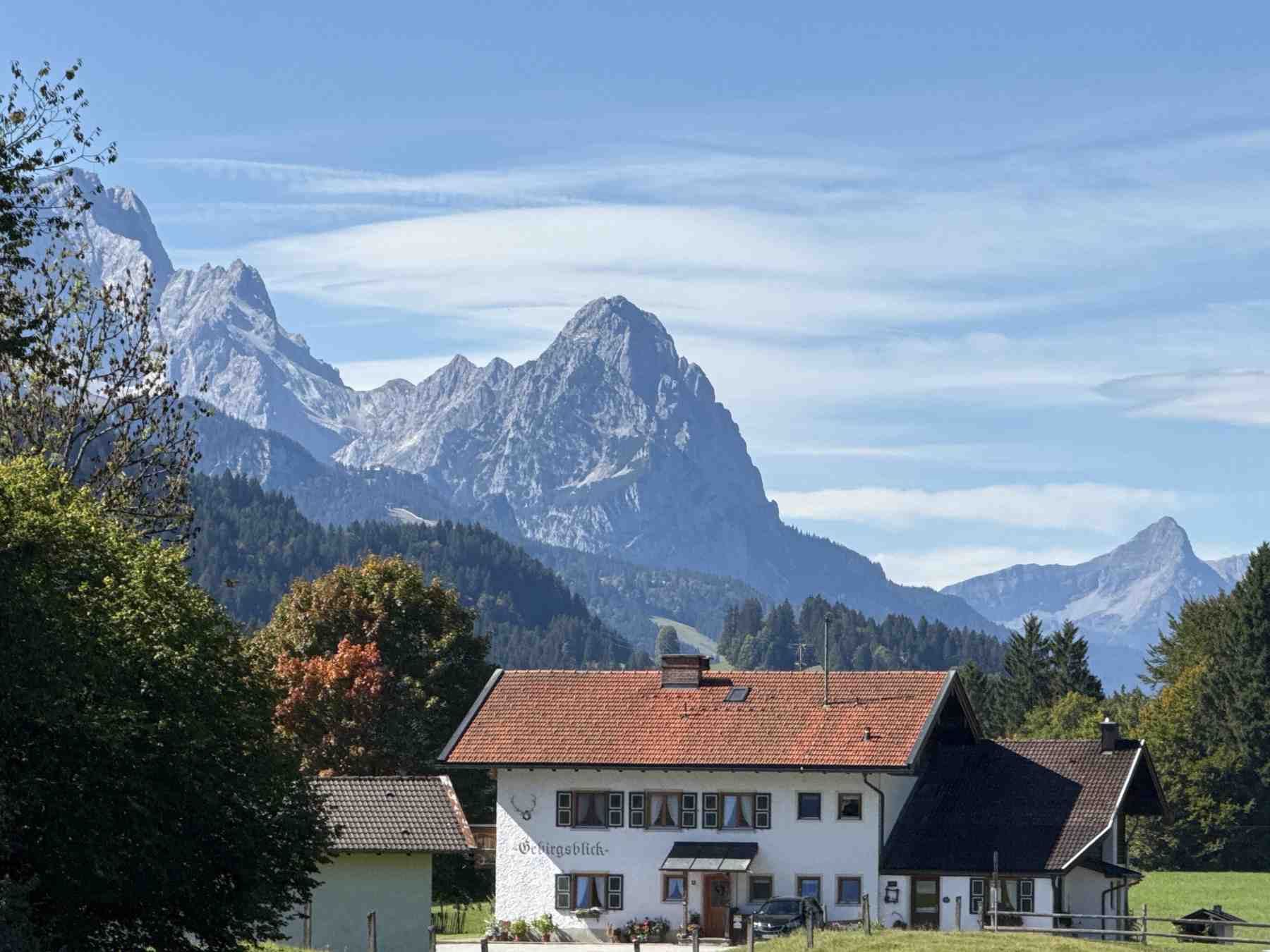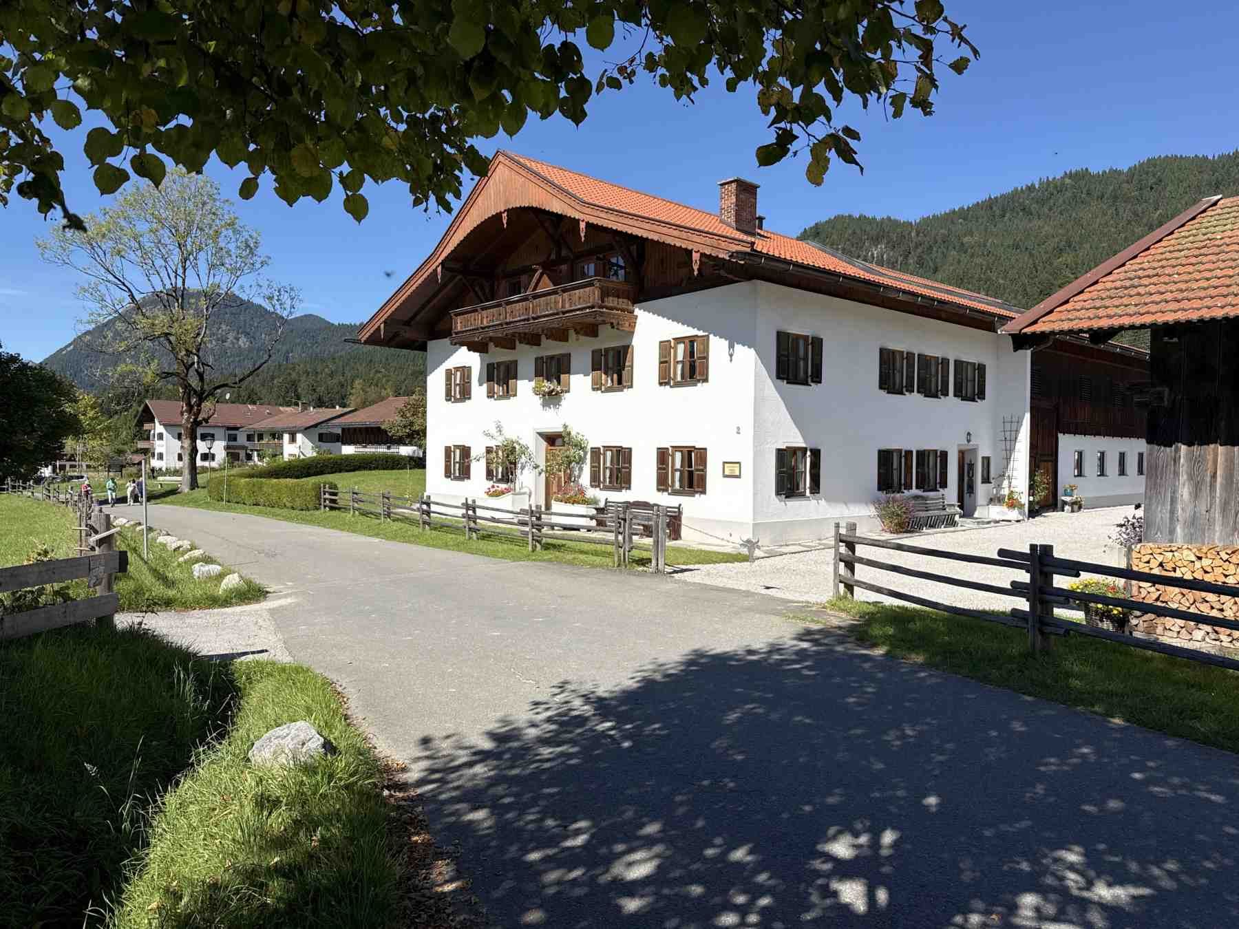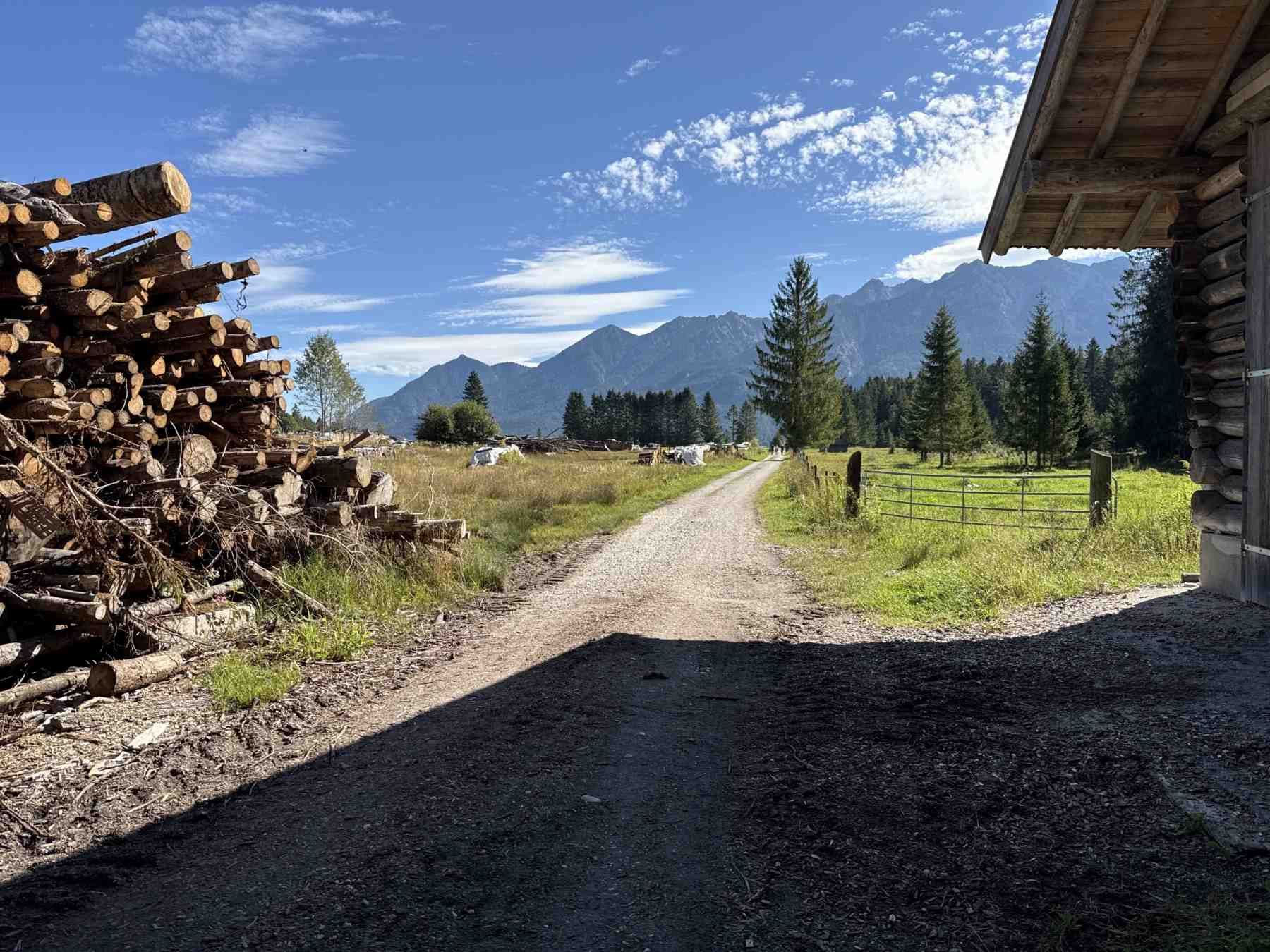 Von der Bushaltestelle aus orientieren wir uns in Richtung der kleinen Ortschaft Gerold. Gleich am Ortsrand beginnt die gute Ausschilderung "Krün - Weg 406", der wir bis zum Ziel folgen.
